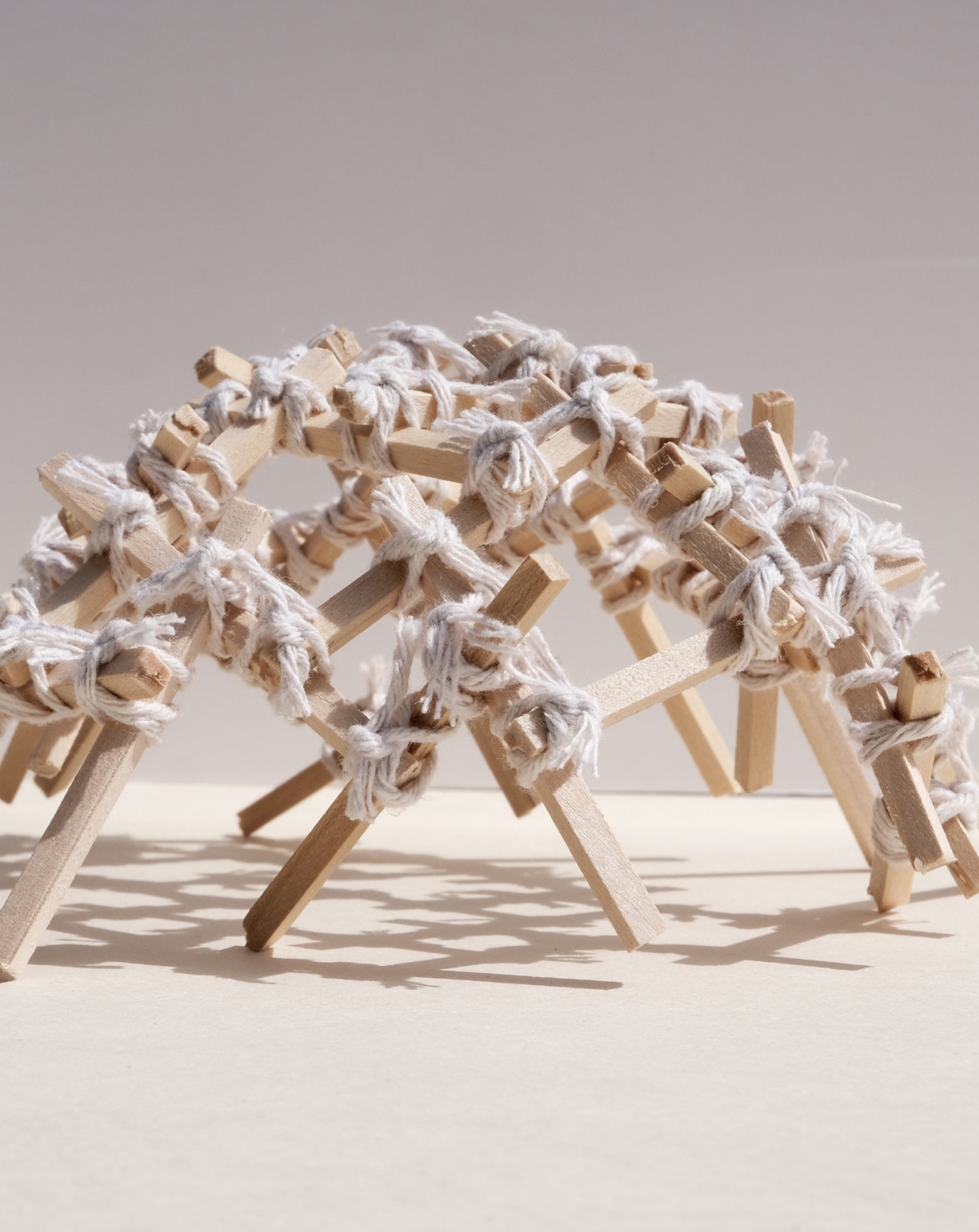 Prozess von Bewegung, Zeitlichkeit und Dekomposition. Verwebung bezeichnet die Anwendung dieser Perspektive auf die vorgefundene Landschaft Süd-Euböas, in welcher sich die Narben menschlicher Aktivitäten wie Brandstiftung und Ressourcenabbau eingeschrieben haben. Antworten schließlich eröffnet Möglichkeiten für artenübergreifendes Zusammenleben, indem die Körper der Landschaft rekonfiguriert werden und das Vernakuläre als Ansatz für eine gemeinsame Sprache der Materialverwendung herangezogen wird.