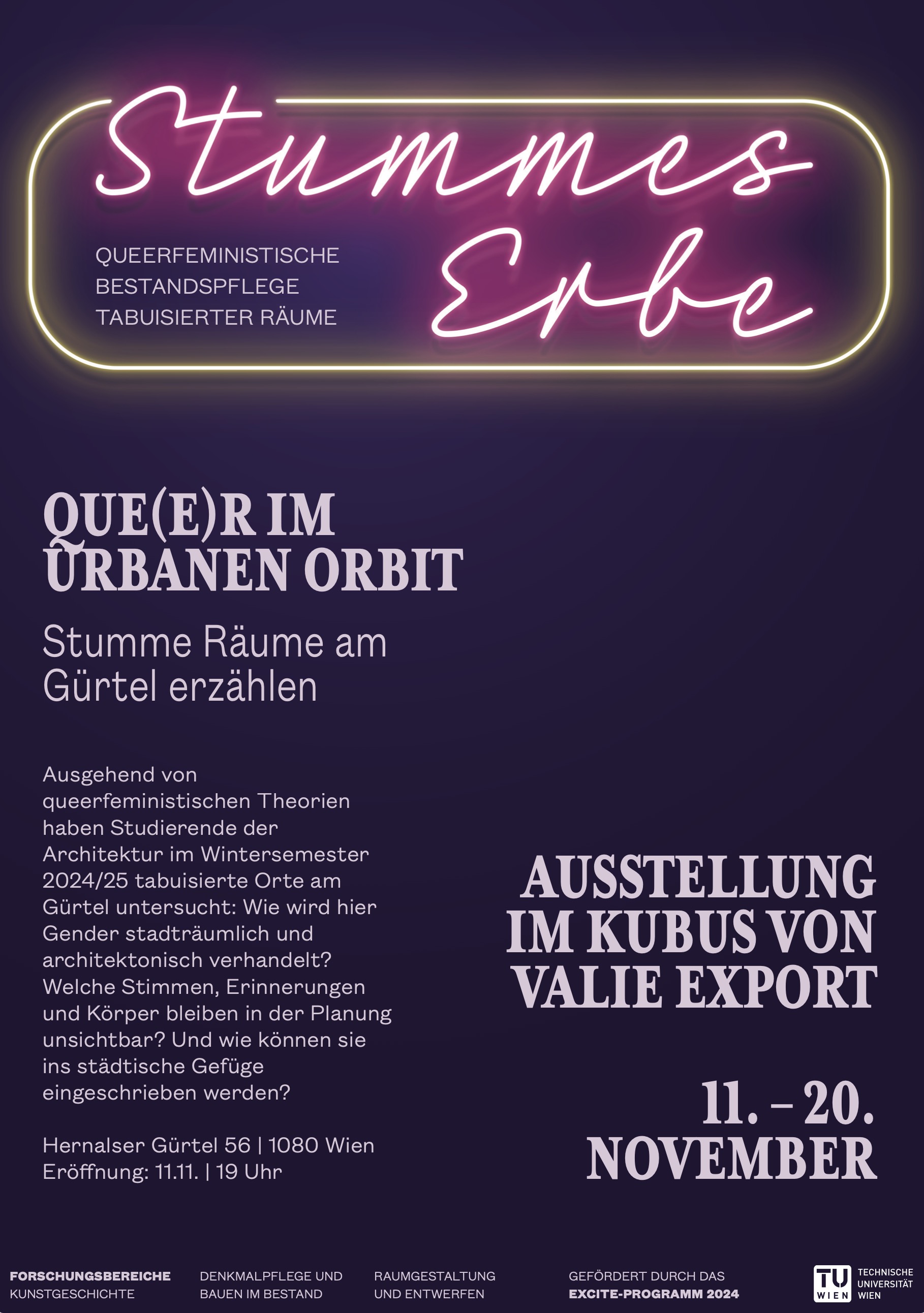 Veranstaltung 2025WAktuelle Que(e)r im urbanen OrbitAusstellung11.11. – 20.11.2025, 19 UhrKubus von Valie Export, Hernalser Gürtel 56, 1080 Wien