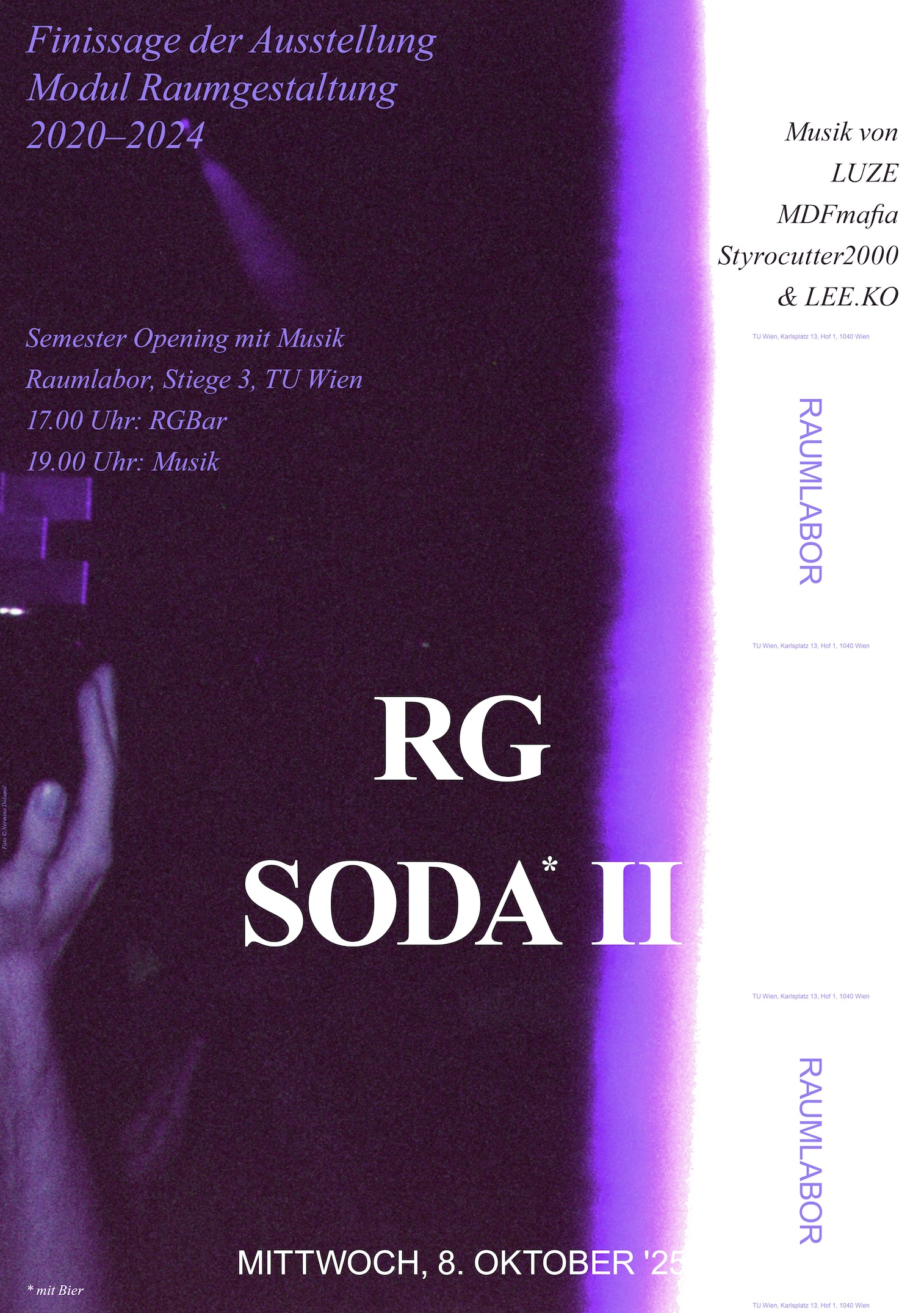 Veranstaltung 2025WAktuelle RG SODA IIAbschlussfest im Rahmen der Ausstellung Der Raum als ManifestMi, 08.10.2025, ab 17.00 Uhr, Raumlabor, Hof 1, TU Wien